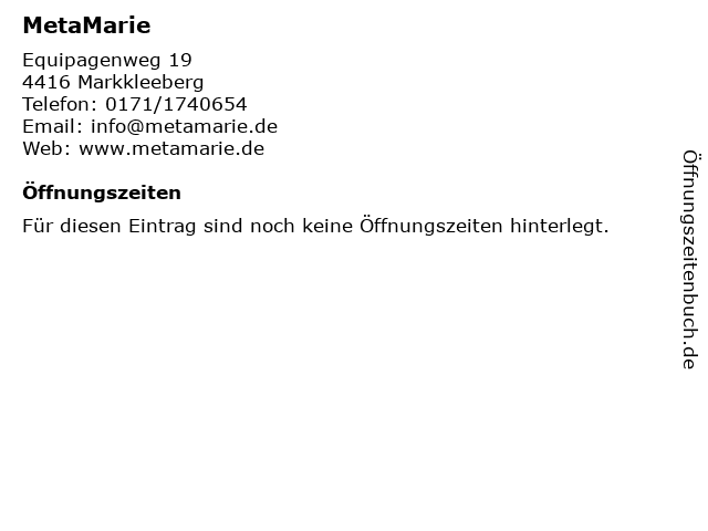 | Öffnungszeiten MetaMarie in Markkleeberg anzeigen | |