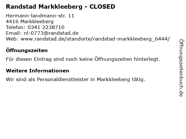 | Randstad Markkleeberg - CLOSED anrufen | |