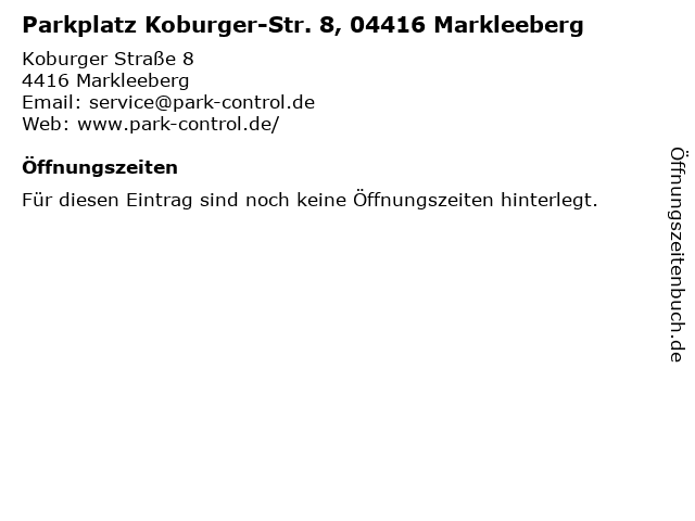 | Öffnungszeiten Parkplatz Koburger-Str. 8, 04416 Markleeberg in Markleeberg anzeigen | |