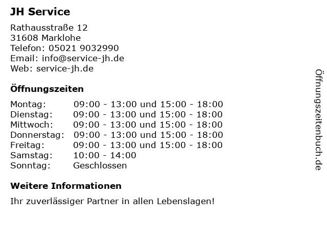 | Öffnungszeiten JH Service in Marklohe anzeigen | |