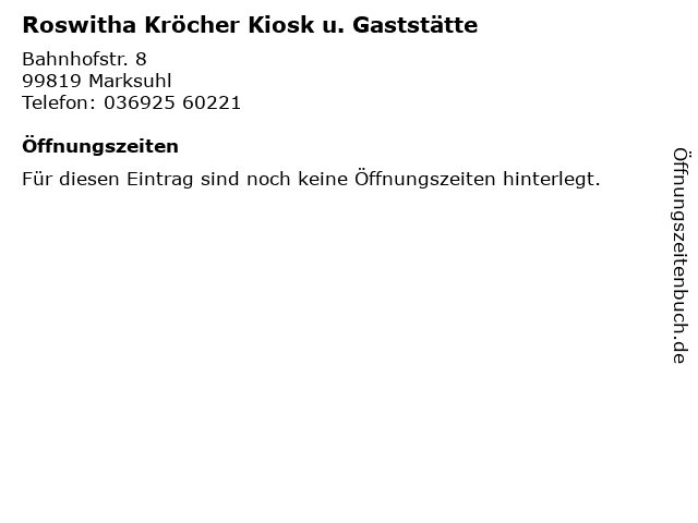 | Roswitha Kröcher Kiosk u. Gaststätte anrufen | |