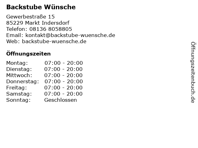 | Öffnungszeiten Backstube Wünsche in Markt Indersdorf anzeigen | |