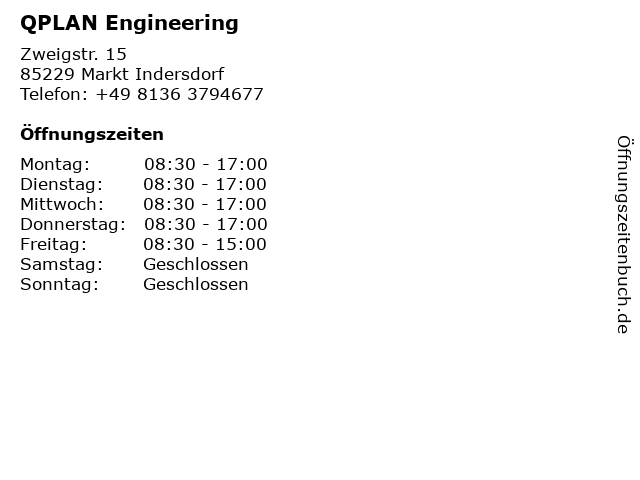 | Öffnungszeiten QPLAN Engineering in Markt Indersdorf anzeigen | |