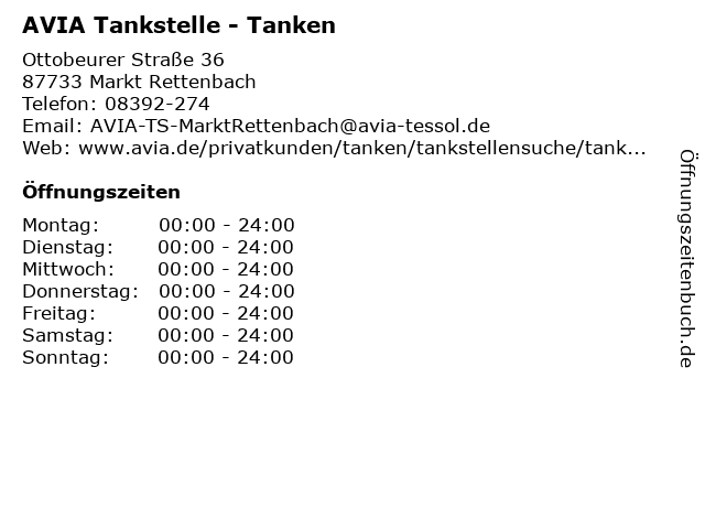 AVIA Tankstelle - Tanken in Markt Rettenbach: Telefonnummer, Öffnungszeiten und Adresse
