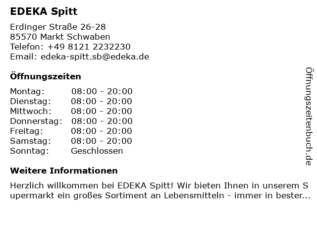 Öffnungszeiten EDEKA Spitt in Markt Schwaben anzeigen | |