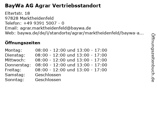 3 ZG Raiffeisen Agrar-Niederlassung und Getreidesilo (Entfernung: 12,09 km) Hafenstraße 27, 97877 Wertheim 5 BayWa Bau- & Gartenmärkte GmbH & Co. KG Karlstadt (Entfernung: 18,11 km) Am Hammersteig 6, 97753 Karlstadt 6 BayWa Bau- & Gartenmärkte GmbH & Co. KG Würzburg (Entfernung: 29,03 km) Nürnberger Straße 133, 97076 Würzburg |