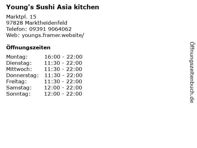 Branchen & Suchbegriffe zu Young's Sushi Asia kitchen:asia, essen, gastronomie, getränke, hauptgerichte, kitchen, restaurant, salate, sushi, vorspeisen, young's |
