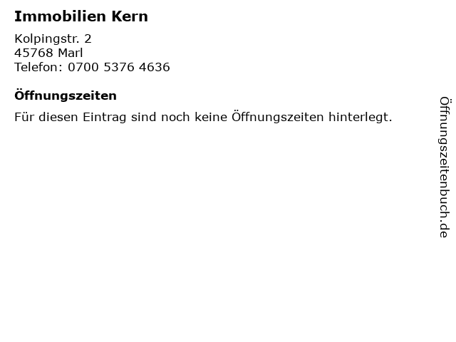 | Öffnungszeiten Immobilien Kern in Marl anzeigen | |