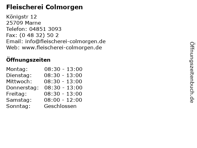 | Öffnungszeiten Fleischerei Colmorgen in Marne anzeigen | |