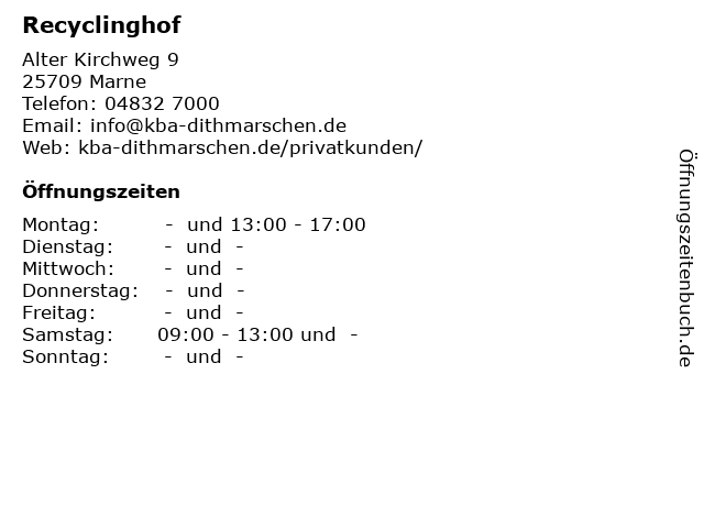 | Öffnungszeiten Recyclinghof in Marne anzeigen | |