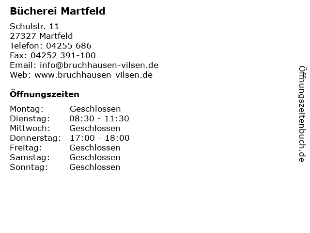 | Öffnungszeiten Bücherei Martfeld in Martfeld anzeigen | |