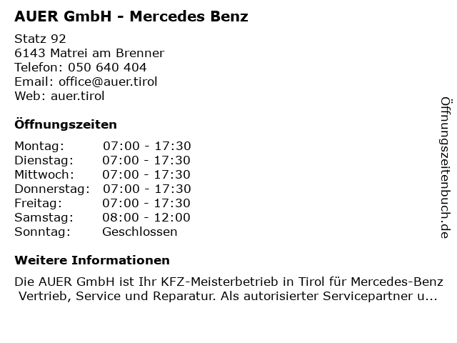 | Montag | 07:00-17:30 |