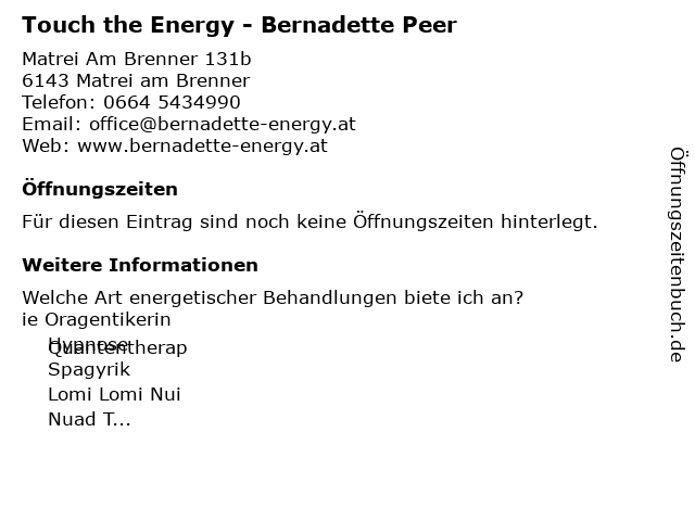 | Touch the Energy - Bernadette Peer anrufen | |
