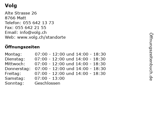 | Öffnungszeiten Volg in Matt anzeigen | |