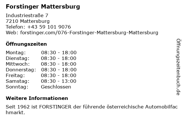 | Öffnungszeiten Forstinger Mattersburg in Mattersburg anzeigen | |