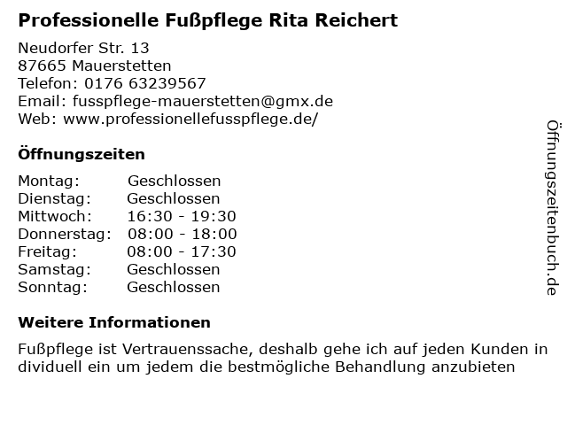 | Branchen & Suchbegriffe zu Professionelle Fußpflege Rita Reichert:fußpflege, professionelle, reichert, rita |