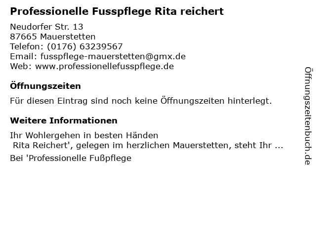 | Professionelle Fusspflege Rita reichert anrufen | |