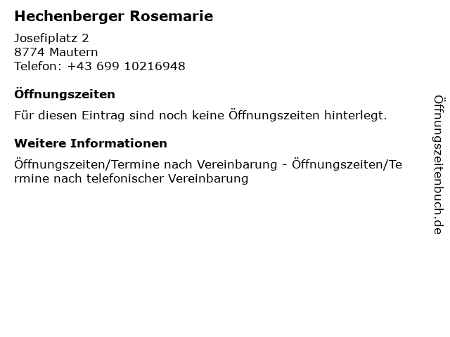 | Öffnungszeiten Hechenberger Rosemarie in Mautern anzeigen | |