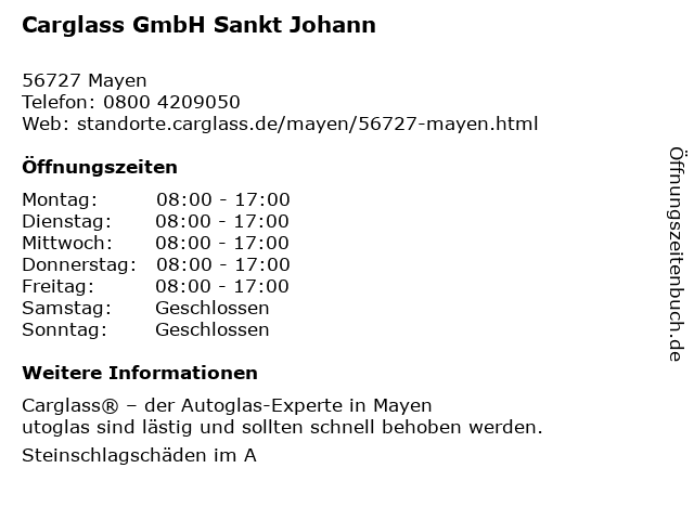 | Öffnungszeiten Carglass GmbH Sankt Johann in Mayen anzeigen | |