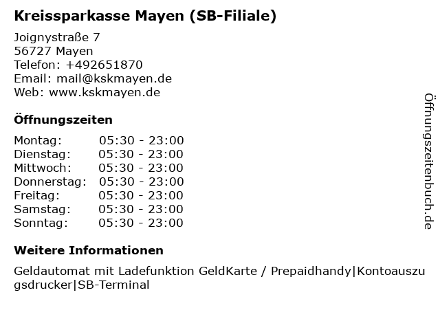 Öffnungszeiten Kreissparkasse Mayen (SB-Filiale)