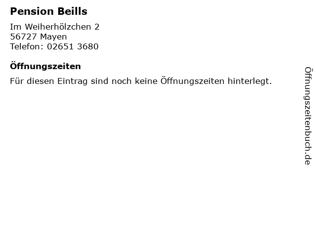 | Öffnungszeiten Pension Beills in Mayen anzeigen | |
