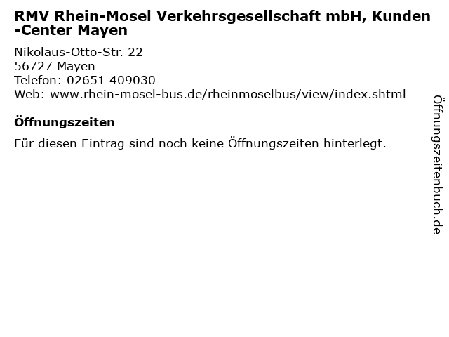 | RMV Rhein-Mosel Verkehrsgesellschaft mbH, Kunden-Center Mayen anrufen | |