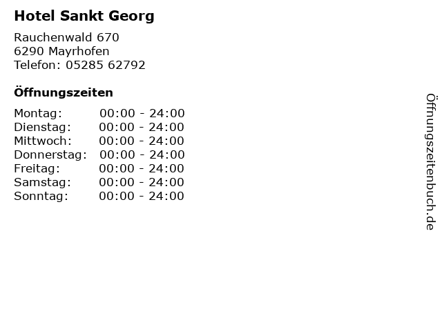 | Öffnungszeiten Hotel Sankt Georg in Mayrhofen anzeigen | |