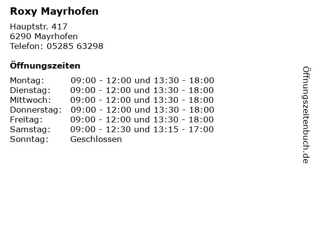 | Öffnungszeiten Roxy Mayrhofen in Mayrhofen anzeigen | |