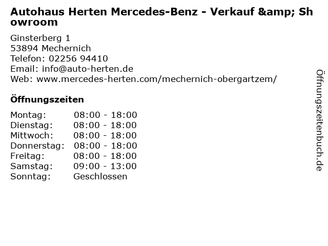 1 Autohaus Herten Mercedes-Benz - Werkstatt & Service (Entfernung: 0,02 km) Ginsterberg 1, 53894 Mechernich 6 |