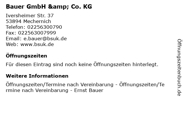 | Öffnungszeiten Bauer GmbH & Co. KG in Mechernich anzeigen | |