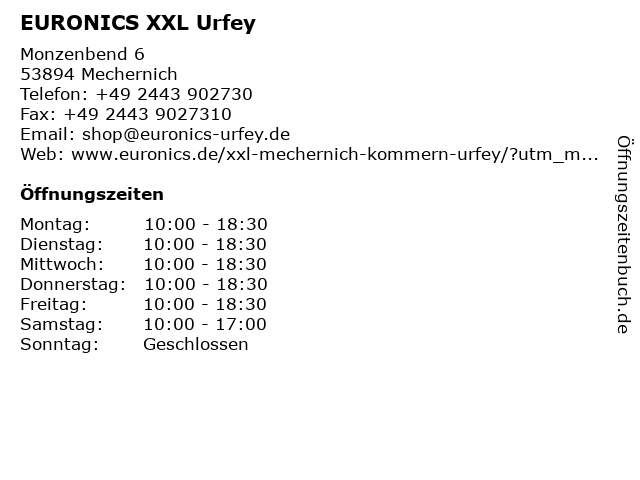| Öffnungszeiten EURONICS XXL Urfey in Mechernich anzeigen | |
