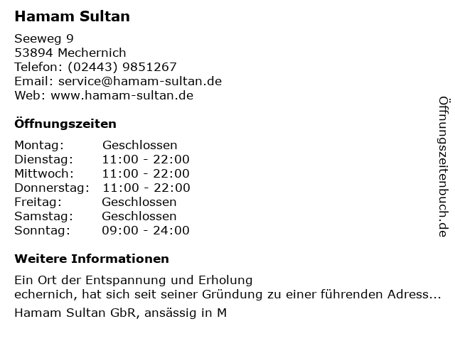 Öffnungszeiten Hamam Sultan in Mechernich anzeigen | |