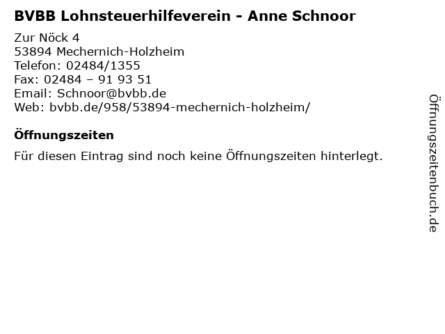 | BVBB Lohnsteuerhilfeverein - Anne Schnoor anrufen | |