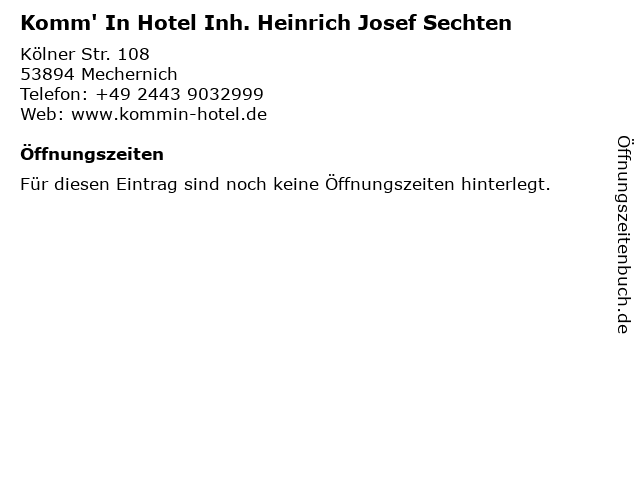 | Komm' In Hotel Inh. Heinrich Josef Sechten anrufen | |
