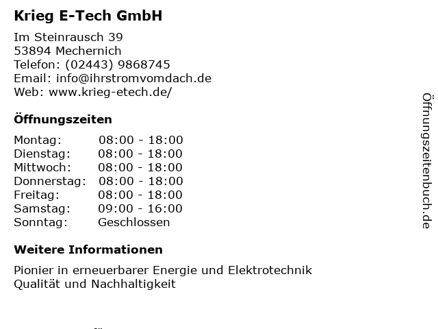 Branchen & Suchbegriffe zu Krieg E-Tech GmbH: altbauinstallationen, alternative energieanlagen, alternative energieformen, alternative energien, alternativenergie, antennenanlagen, antennensysteme, baustromtechnik, baustromversorgung, beleuchtung, beleuchtungstechnik, datenkabelverlegung, datennetze, datennetzwerke, doppelglas-pv-module, e-tech, edv-installation, elektriker, elektrische gebäudeinstallationen, elektro-montagen, elektroanlagen, elektroarbeiten, elektrodienstleistungen, elektroinstallationen, elektromeister, elektroniker, elektroniksanierungen, elektroprüfung, elektroreparaturen, elektrosanierungen, elektroservice, elektrowartung, erneuerbare energien, flachkollektoren, fotovoltaik, fotovoltaikanlagen, fotovoltaikzubehör, gebäudeautomation, gebäudeinstallationen, gebäudesystemtechnik, gebäudetechnik, heizstrom, kabelbau, kabelkanäle, kabelverlegung, kommunikationssysteme, kommunikationstechnik, komplettanlagen, krieg, leuchten, lichtberatung, lichttechnik, lüftungssteuerung, montage von elektronik, netzwerk-infrastruktur, netzwerk-lösungen, netzwerke, netzwerkservice, neubauinstallationen, neuinstallationen, photovoltaik, photovoltaik-planung, photovoltaikanlagen, photovoltaikfinanzierungen, photovoltaiksysteme, photovoltaiktechnik, photovoltaikversicherungen, pv-anlagen, pv-module, regenerative energien, schaltanlagen, schaltanlagenbau, schaltschrankbau, schaltschränke, schwachstromtechnik, sicherheitsanlagen, sicherheitstechnik, solaranlagen, solaranlageninstallation, solaranlagenmontage, solarberatung, solardächer, solarmodule, solarstromanlagen, solarsysteme, solartechnik, solarthermie, solarwärme, sonnenenergie, sonnenkollektoren, sonnenstromanlagen, speichertechnik, sprechanlagen, sprechanlageninstallation, tech, vernetzung, wallbox, wechselrichter, wintergarten-pv-module, zählerinstallationen, ökologische energien, ökostrom
