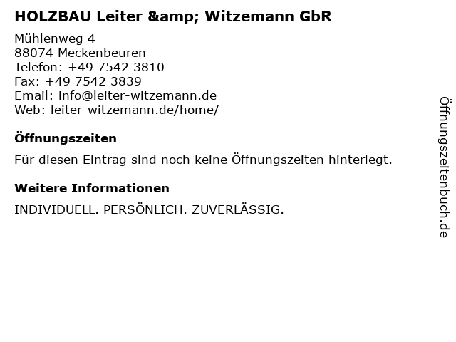 | HOLZBAU Leiter & Witzemann GbR anrufen | |