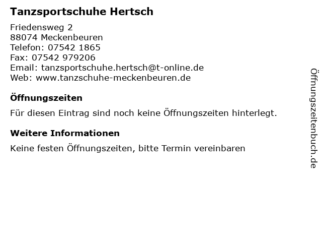 | Telefonnummer Tanzsportschuhe Hertsch in Meckenbeuren (07542 1865) anrufen | |