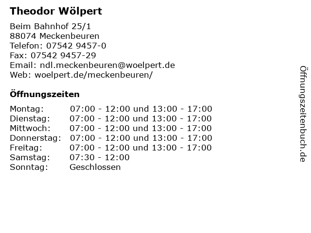 | Öffnungszeiten Theodor Wölpert in Meckenbeuren anzeigen | |