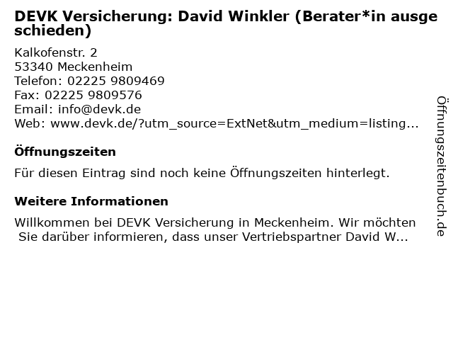 | DEVK Versicherung: David Winkler (Berater*in ausgeschieden) anrufen | |