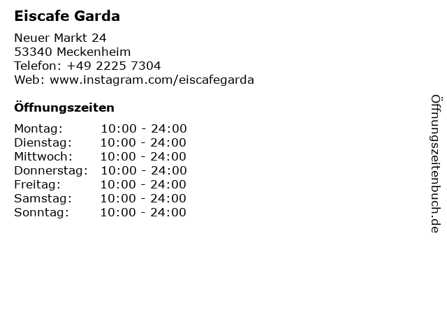 | Öffnungszeiten Eiscafe Garda in Meckenheim anzeigen | |