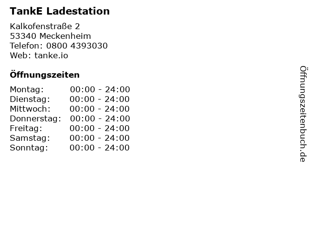| Öffnungszeiten TankE Ladestation in Meckenheim anzeigen | |