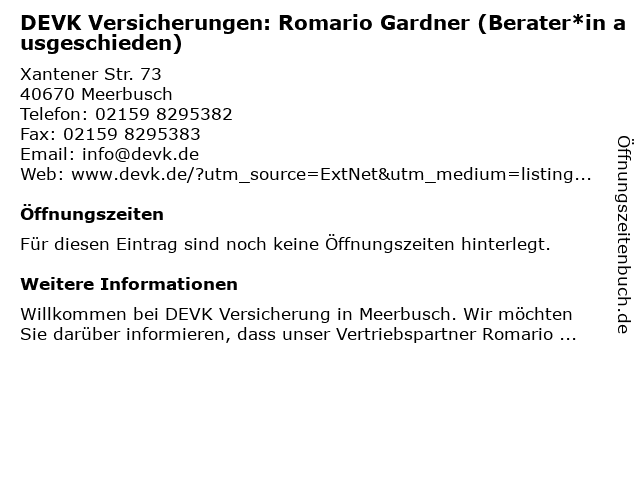 | DEVK Versicherungen: Romario Gardner (Berater*in ausgeschieden) anrufen | |