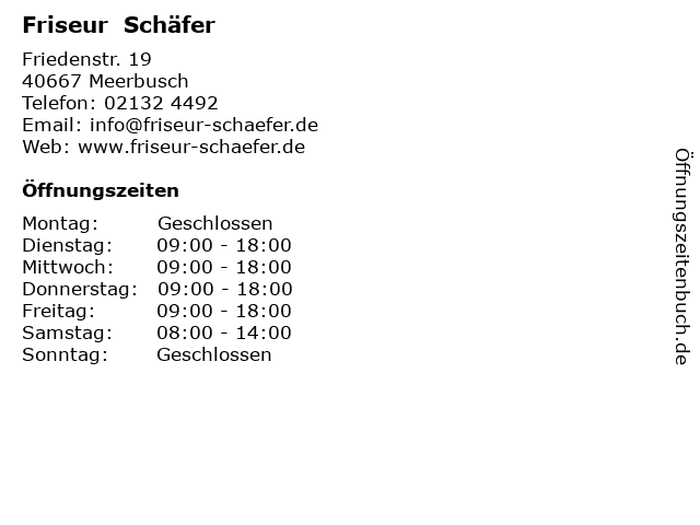 | Öffnungszeiten Friseur Schäfer in Meerbusch anzeigen | |