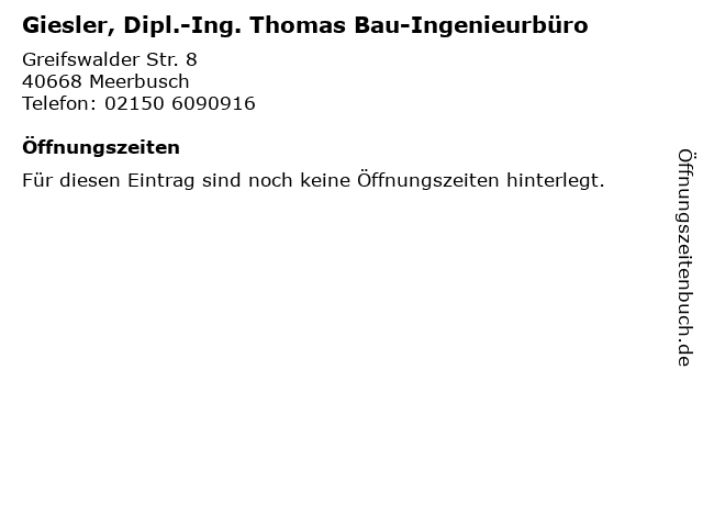 | Giesler, Dipl.-Ing. Thomas Bau-Ingenieurbüro anrufen | |