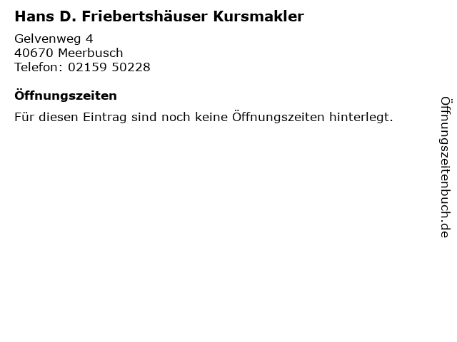 | Hans D. Friebertshäuser Kursmakler anrufen | |