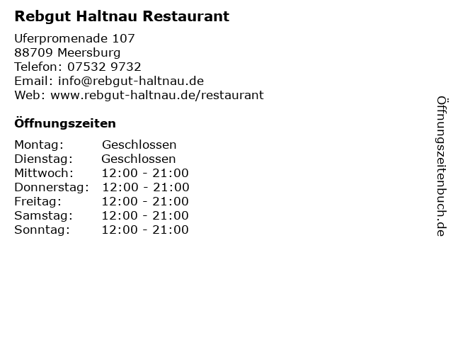 | Öffnungszeiten Rebgut Haltnau Restaurant in Meersburg anzeigen | |