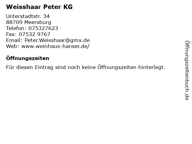 | Öffnungszeiten Weisshaar Peter KG in Meersburg anzeigen | |
