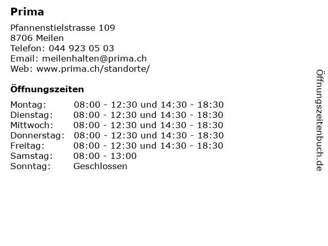 | Öffnungszeiten Prima in Meilen anzeigen | |