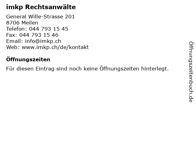 Öffnungszeiten imkp Rechtsanwälte in Meilen anzeigen | |