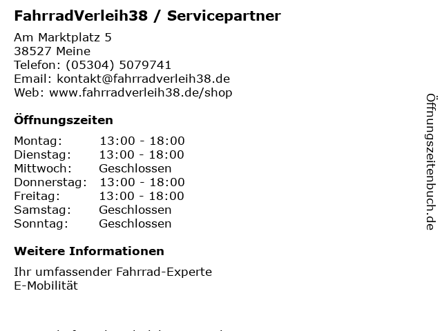 | Freitag | 13:00-18:00 |